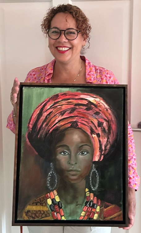 Ik schilder voornamelijk Afrikaanse vrouwen. Ik werk zowel met aquarel, pastelkrijt en nu ook met Cobra (olie)verf. Mijn werk kenmerkt zich door mooie heldere kleuren. Mijn inspiratie haal ik uit mijn (verre) reizen en uit mijn multiculturele achtergrond. Het teken- en schilderwerk is intuïtief. Een foto of plaatje of persoon is de start en dan ontstaat er tijdens het schilderen een nieuwe persoon op het papier of doek.